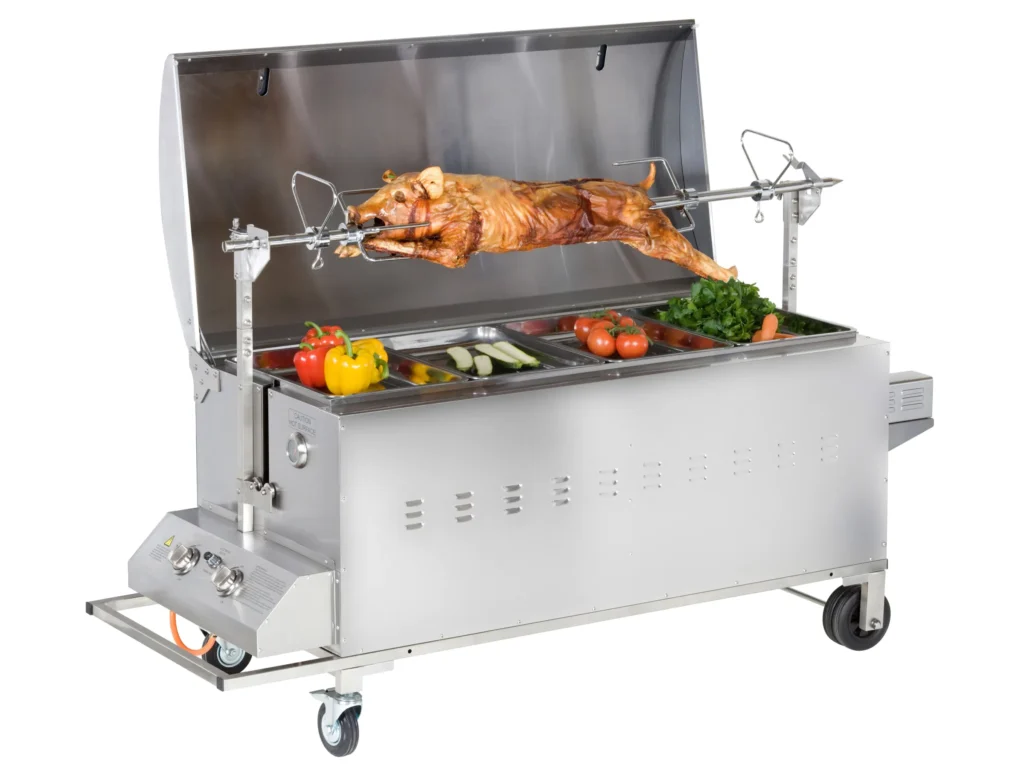 Spanferkelgrill (Bild beispielhaft) – gerne vermitteln wir dazu auch das passende Spanferkel, Lamm oder Wildschwein.